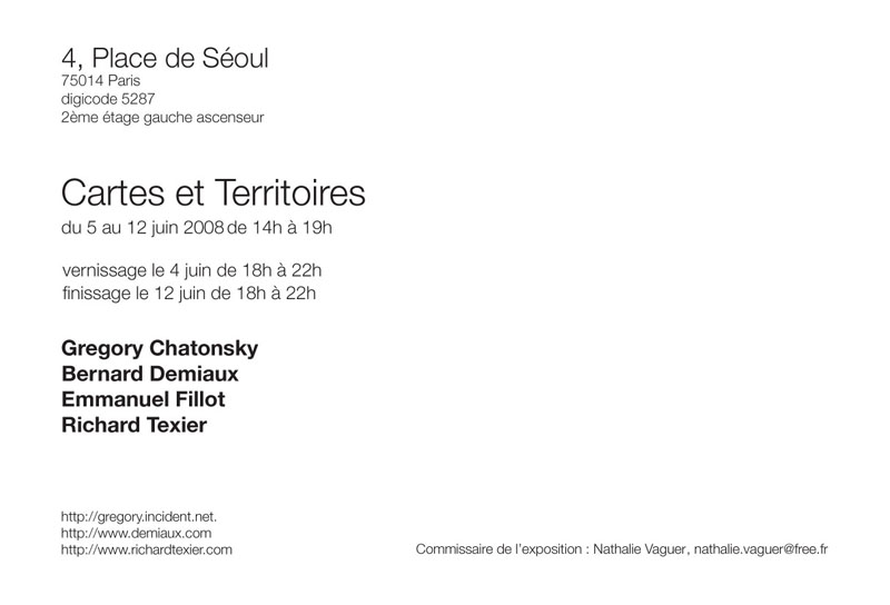 Quatre artistes aux univers plastiques très différents nous invitent à un voyage en terra incognita, multipliant les sensations, oscillant entre carte et territoire.