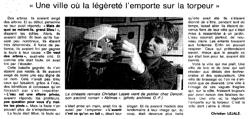 Christian Lejalé - Ouest France des 10-11 mai 1997